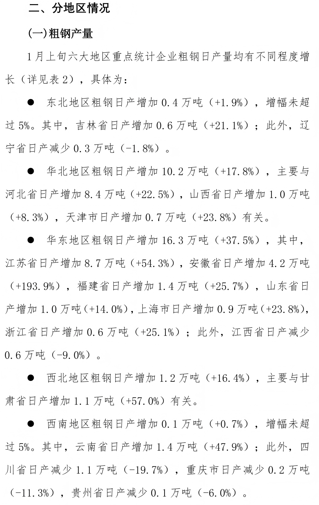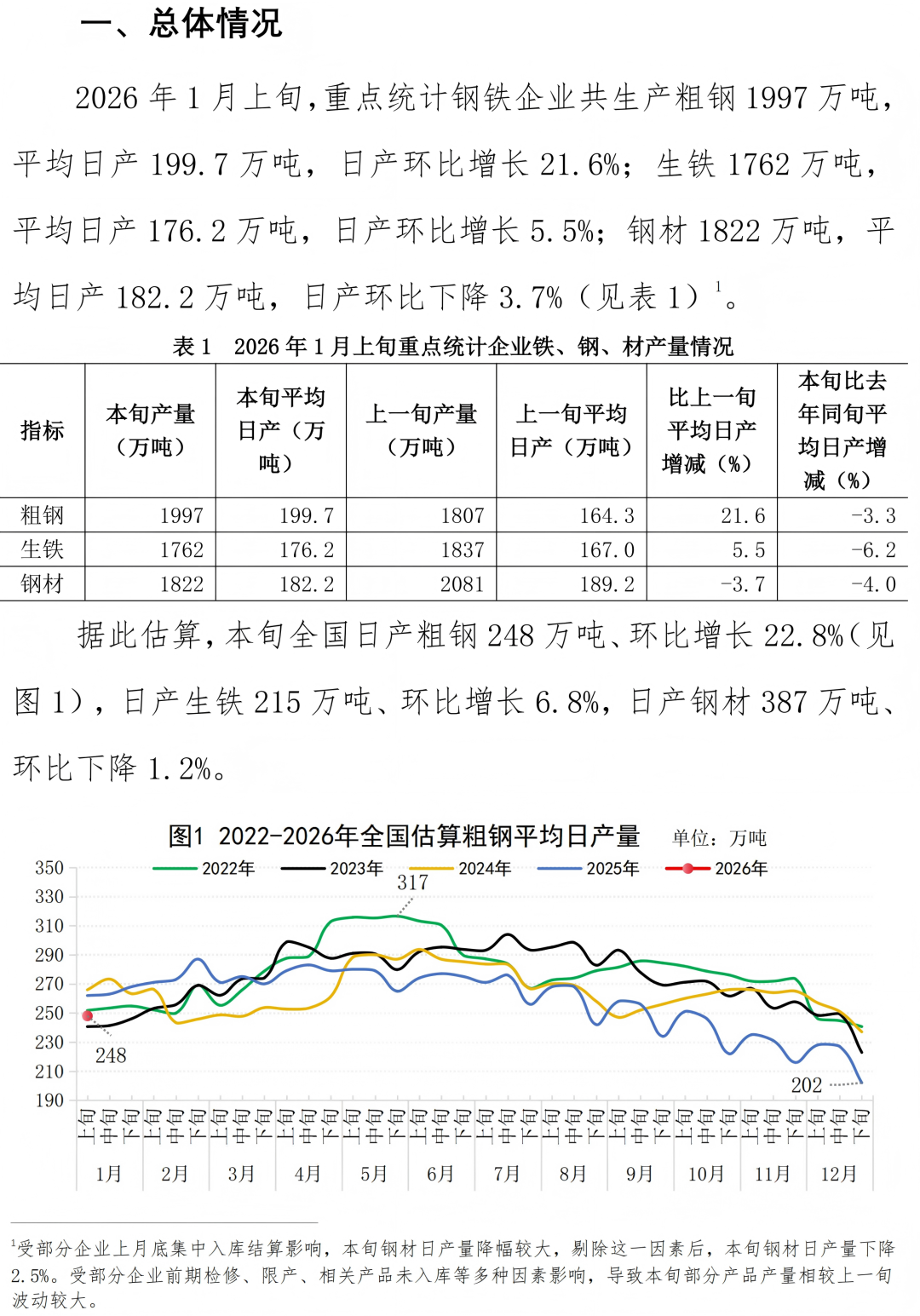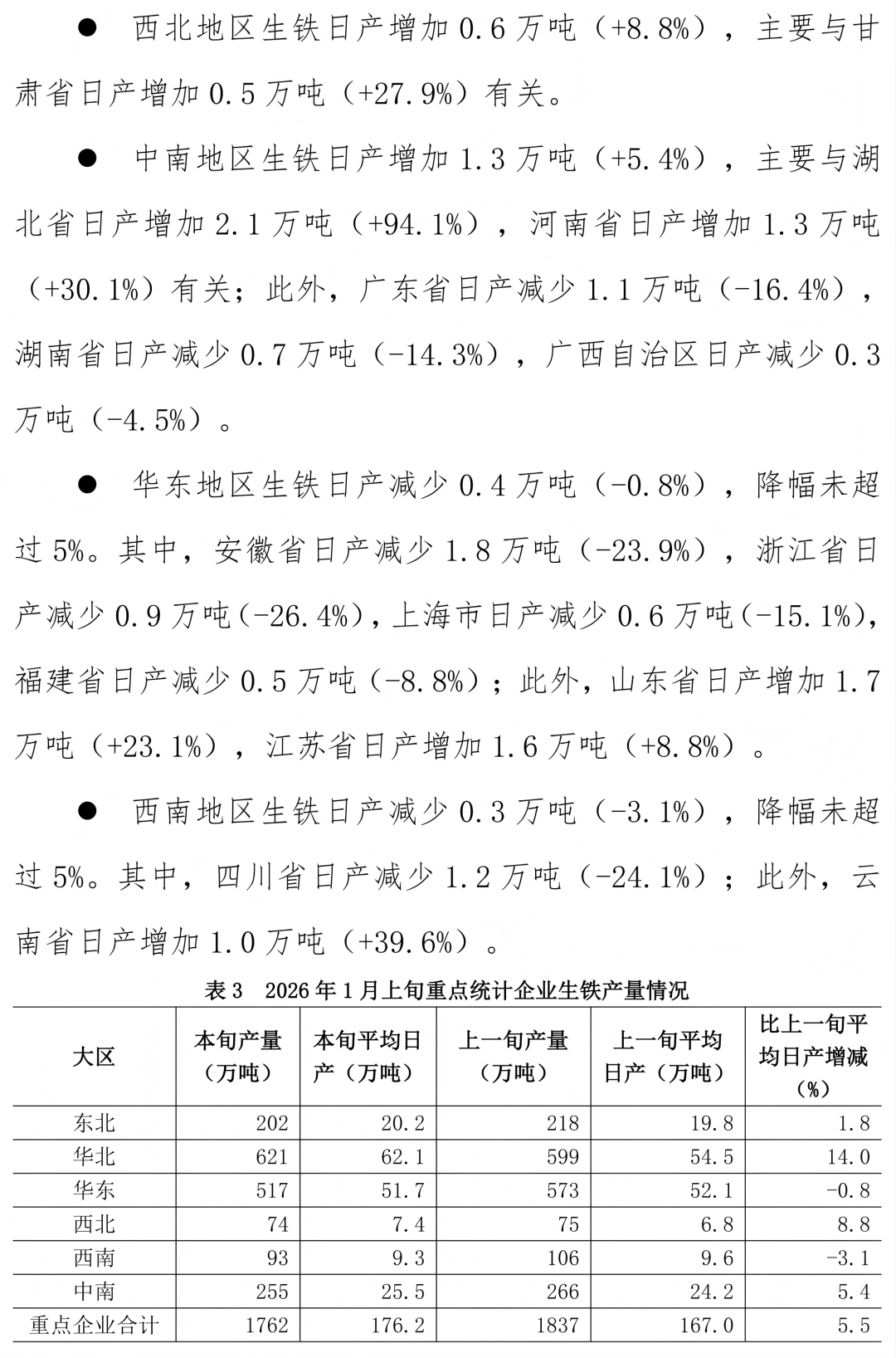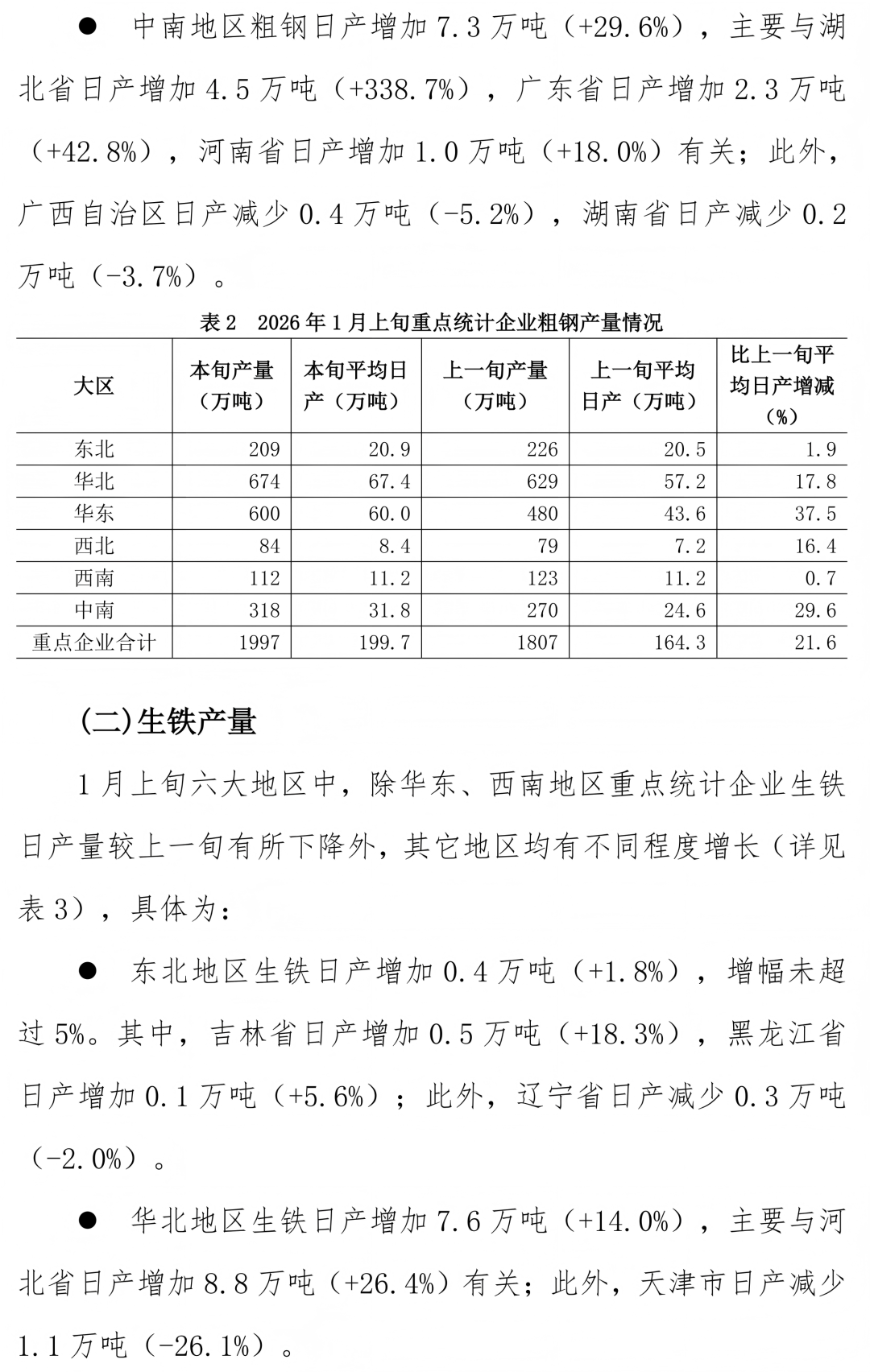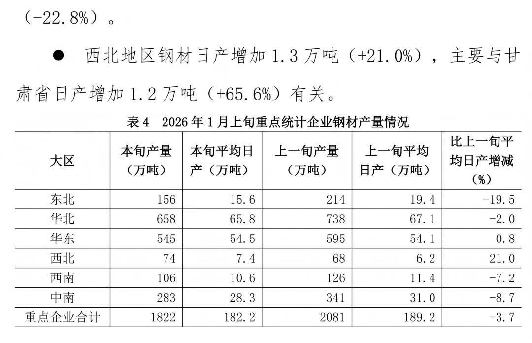 东方汇赢 1月上旬重点统计企业钢铁产量旬报