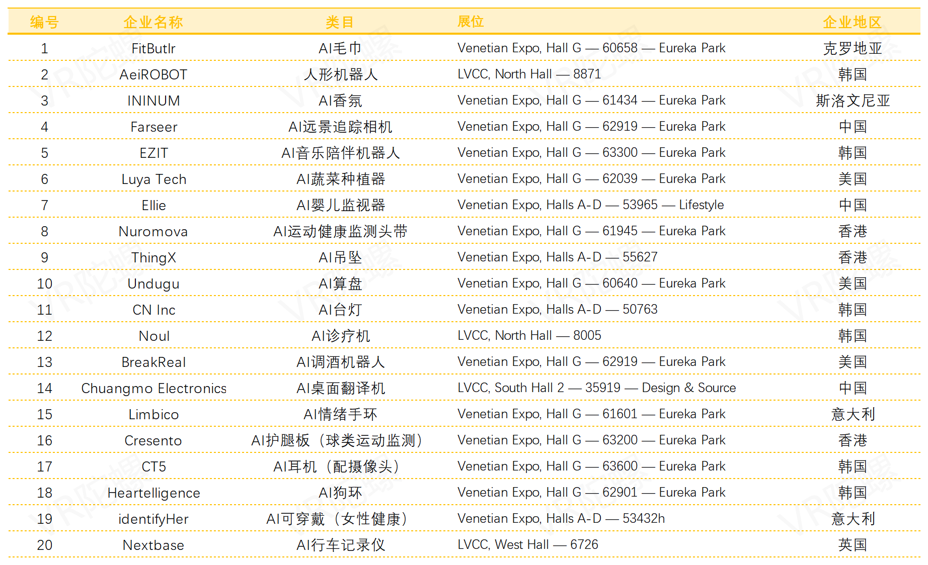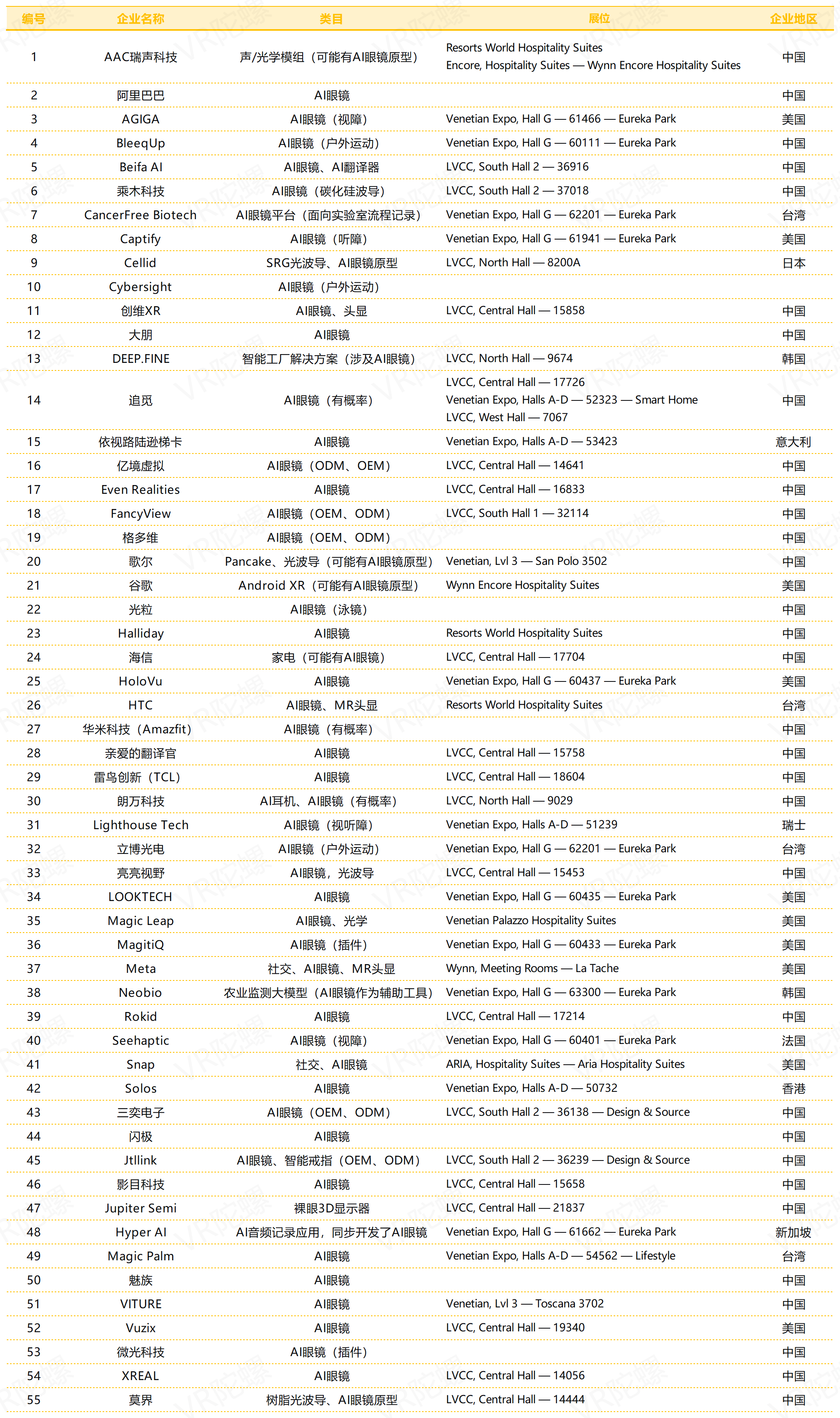 下文VR陀螺分别按照“AI眼镜”、“AI硬件”以及“XR与空间计算”品类整理了三份表格,让我们对CES2026的展品先睹为快。